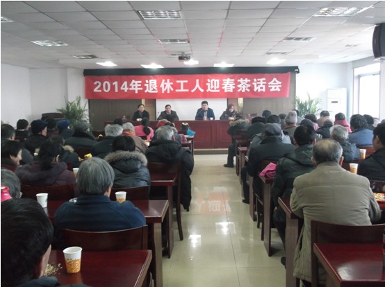 1月18日上午,水建公司八十多名离退休职工欢聚一堂,举行2014年迎春茶话会,共叙情谊、共贺新春。在一曲喜庆的《新年好》歌曲中,茶话会拉开了序幕,老同志们退休后难相见,大家围坐在一起谈笑风生,好不热闹。公司领导对过去一年的工作给老同志做了介绍,并给部分身体欠佳、生活困难的老职工进行了慰问,最后向退休老员工致以新春的衷心祝福和良好祝愿!