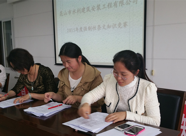 公司于2015年5月9日举办了强制性条文及安全生产知识竞赛,由公司总经理凌小弟先生、副总经理朱太旺先生发表了讲话,赛前说明了竞赛规则及对各参赛队的鼓励与希望。