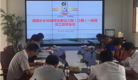 10月18日昆山市水利工程建设管理处组织召开南部水乡岸线综合整治工程(三期)一标完工验收会议,水利局农水科、锦溪水利站及设计、检测、质监、施工、监理等单位相关人员参加。验收会议于锦溪水利站召开,通过听取各方汇报、查看工程现场、查阅工程验收资料,验收小组讨论认为本次验收范围内的工程内容已按合同要求全部完成,一致同意通过完工验收。