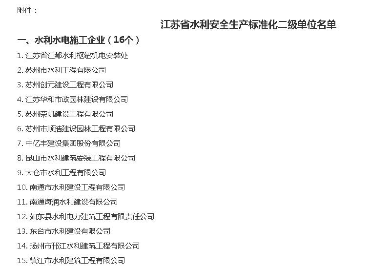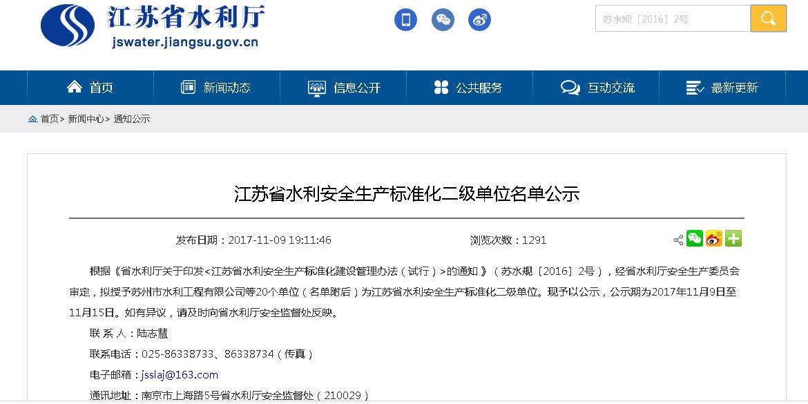 热烈祝贺我公司评价为“江苏省水利安全生产标准化二级单位”!