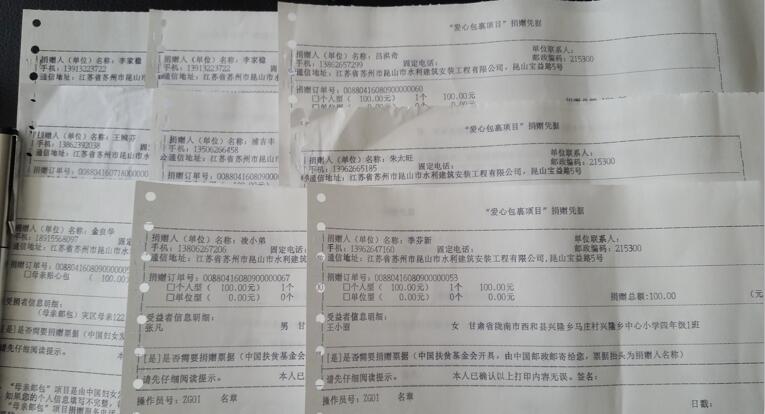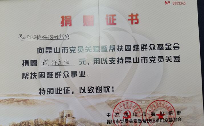 2016年6月我支部全体在职党员共捐助党员关爱基金2300元;2016年7月我支部全体在职党员共向阜宁振灾捐助2500元;2016年8月我支部在职党员、职工共捐献“爱心包裹”3200元整。
