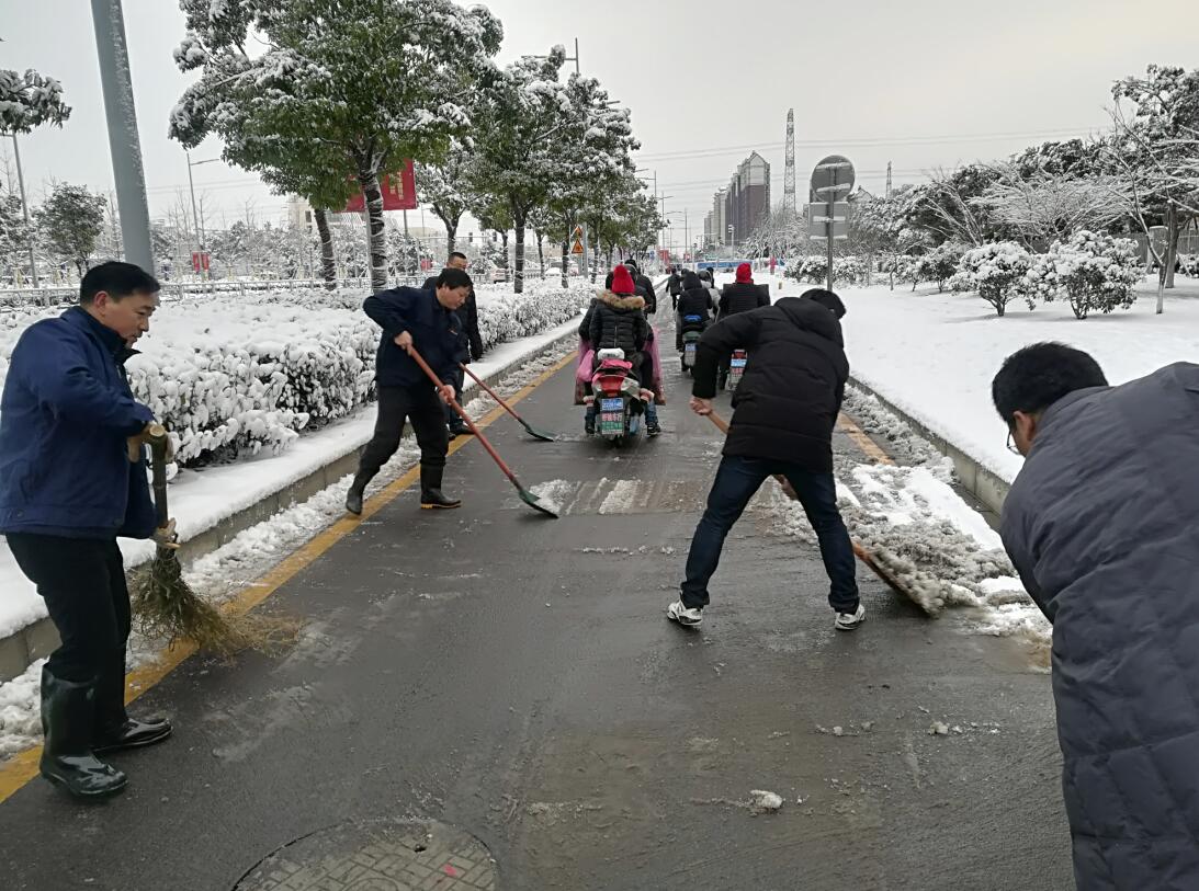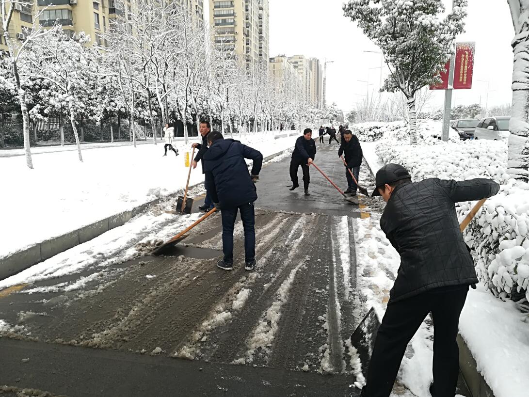 我公司积极响应大雪应急预案,组织人员前往博士路,铲除路面积雪,确保行人及车辆安全。