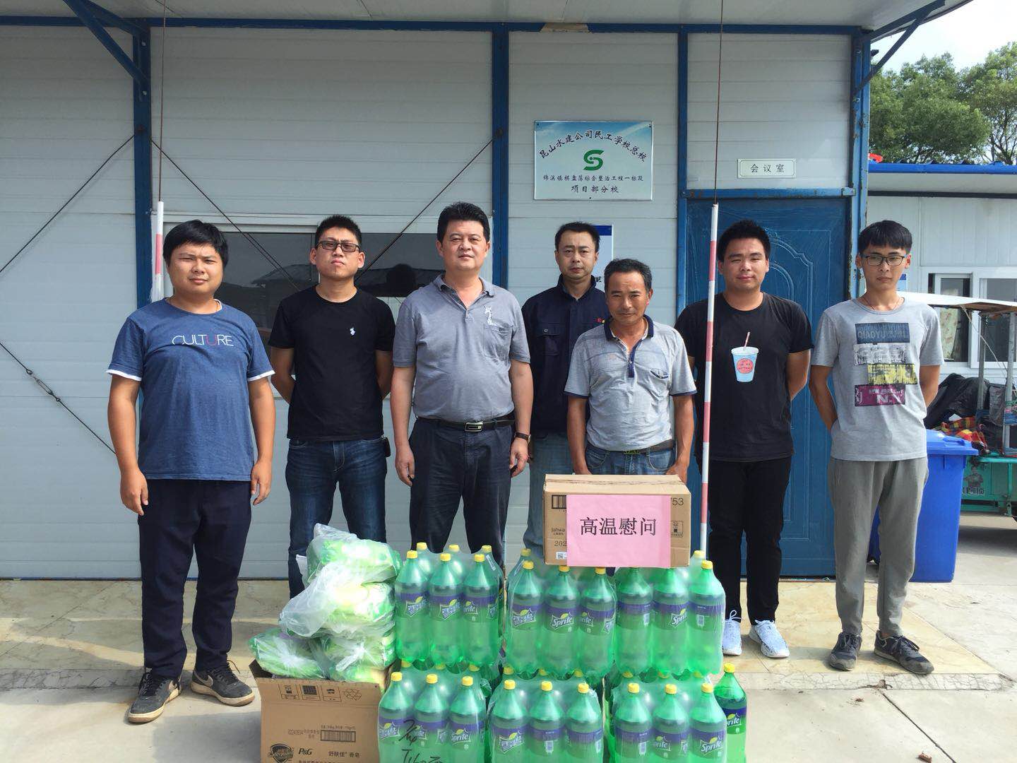 2018年08月02日,昆山水建公司开展员工防暑降温送清凉活动,公司领导为在一线工作的员工们送去防暑降温用品,叮嘱工友们户外作业要做好防暑降温措施,随身携带防暑药品,避免出现中暑现象。并要求各项目部采取有效措施,不断改善员工的工作和生活条件。