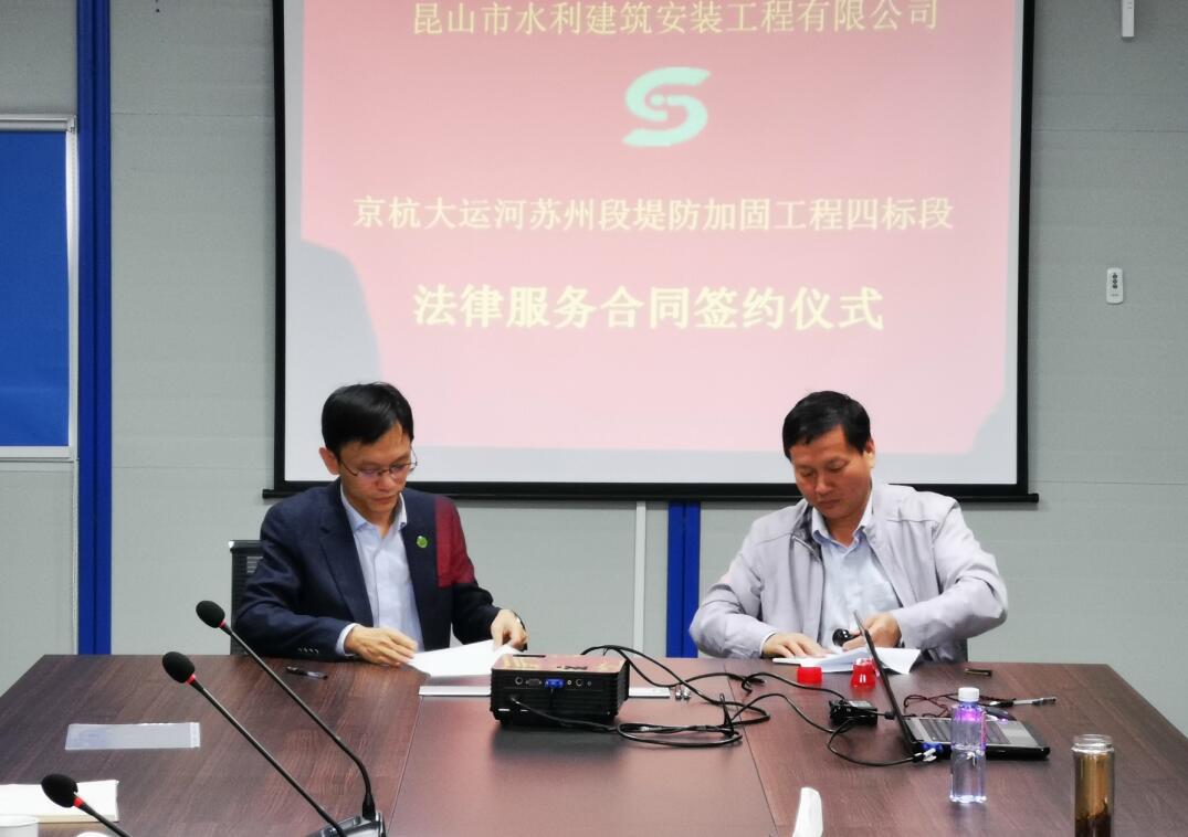 2019年11月06日,我公司将京杭大运河苏州四标段作为试点,首次在项目部引进法律服务,并举行了签约仪式,为以后我公司项目工程施工提供了法律保障。