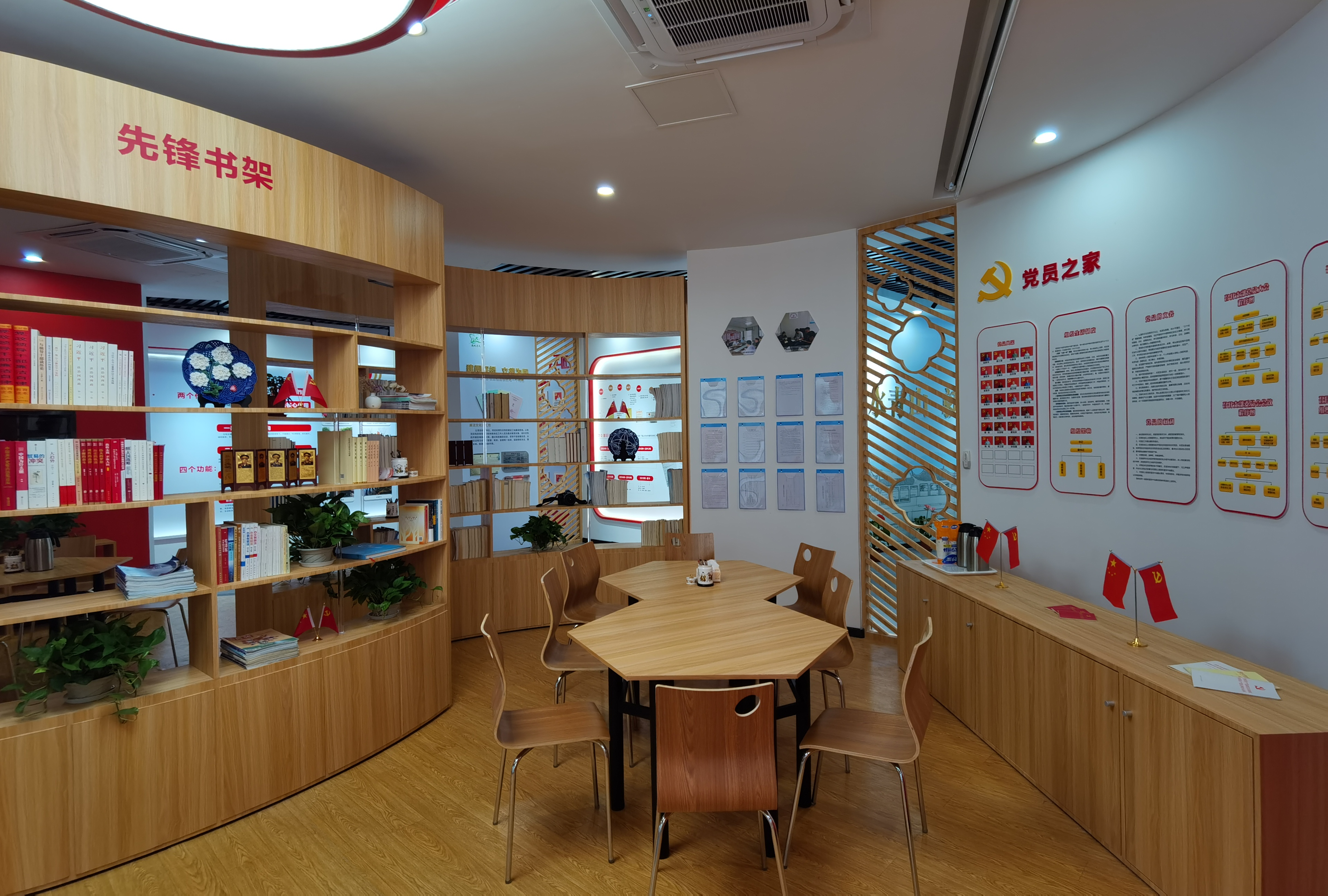 20204年公司支部成立“昆山市水务系统非公企业党群服务站”,本站集政治、服务、教育、展示、宣传功能于一体,设有各类党建标语、党建学习、会议交流、参观活动等,同时党建服务站还设有红色书架,提供阅读区方便党员干部群众学习党建方面的教育知识。
