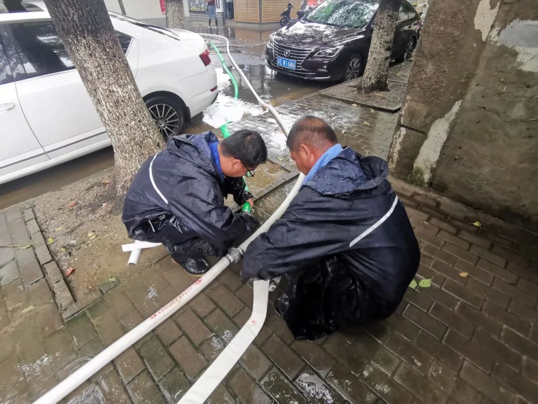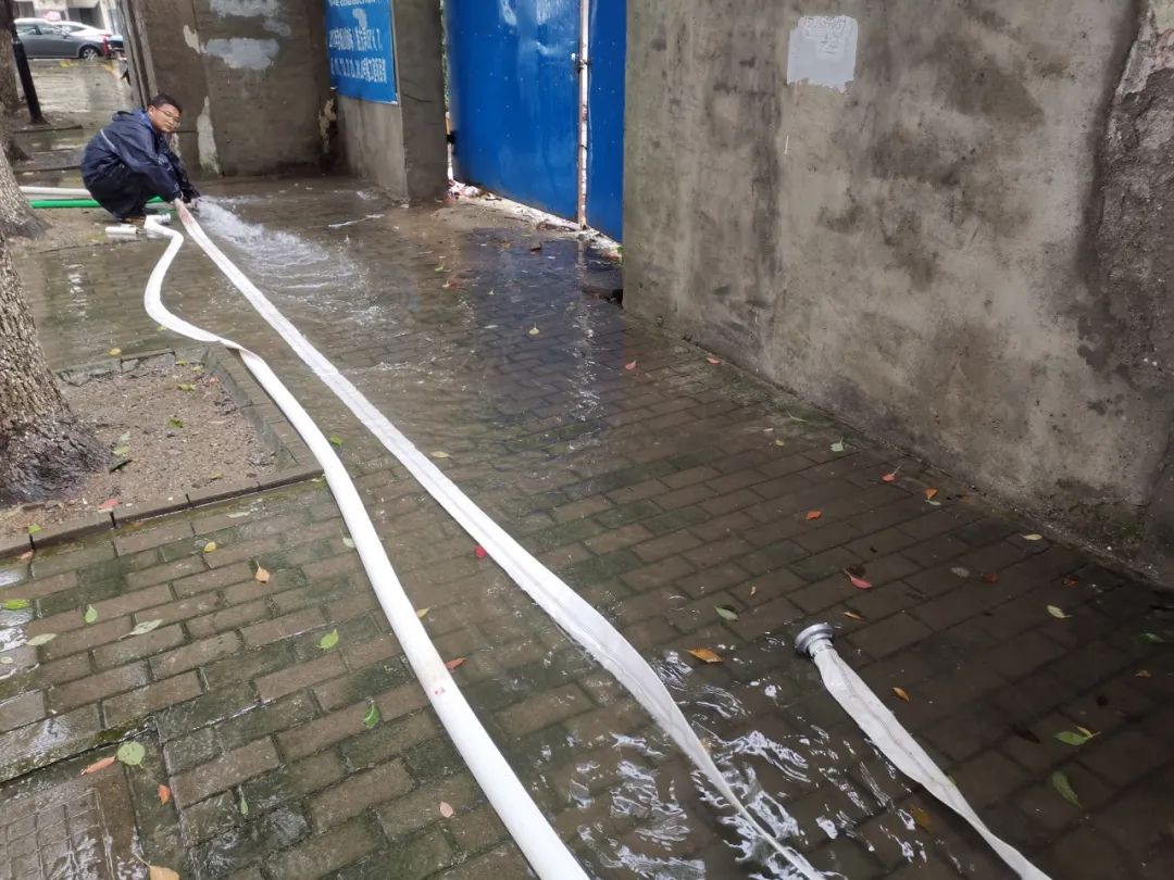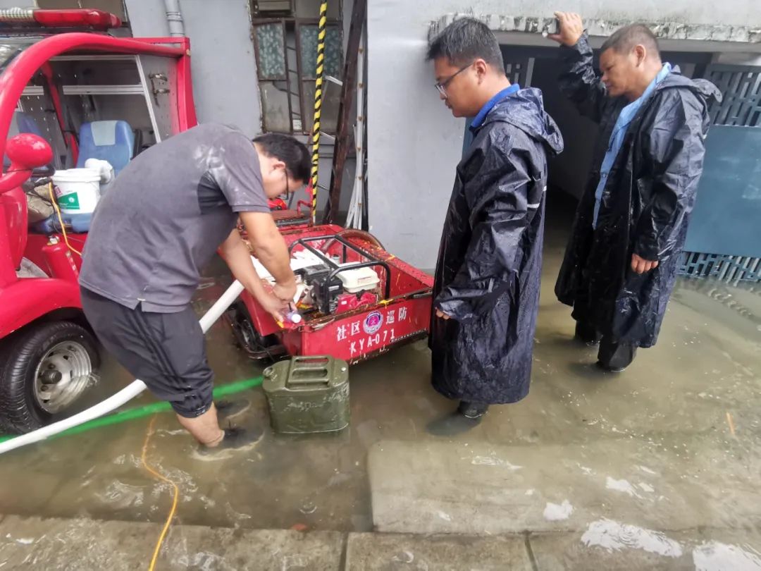 水建公司党支部在得知朝阳社区游方弄小区存在积水,需要组织排涝的消息后,第一时间出动防汛突击队开展排涝,同时组织党员对通澄路等老闸进行抢修。