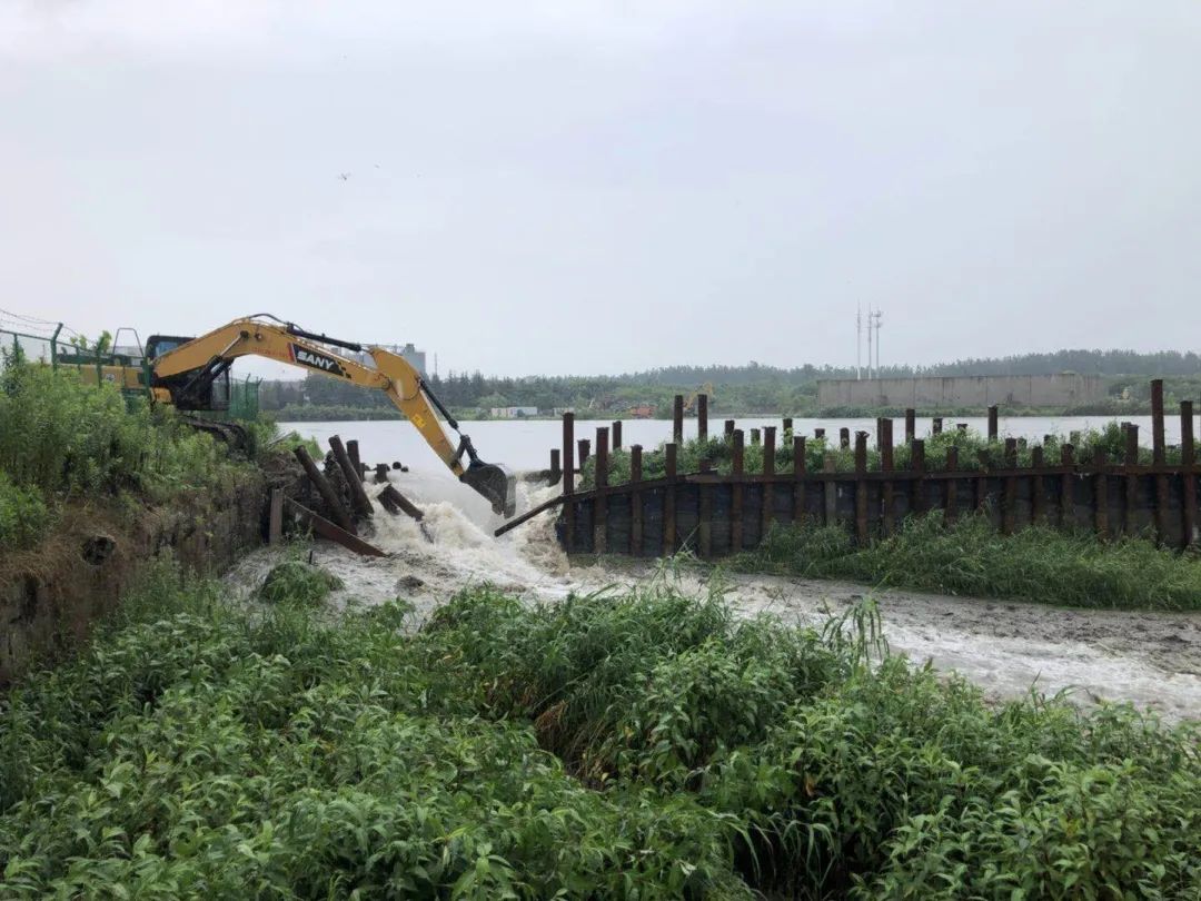 水建公司在建工程千灯道褐浦北引水泵站、苏州工业园区陆泾河水立交北闸工程即将完工,但是面对严峻的雨情和汛情,毫不犹豫决定拆坝,打通泄洪通道。