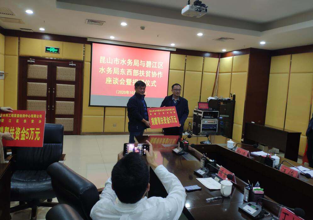 2020年10月24日,我公司同昆山市水务局前往铜仁市碧江区,与碧江区水务局参与了东西部扶贫协作捐赠活动。