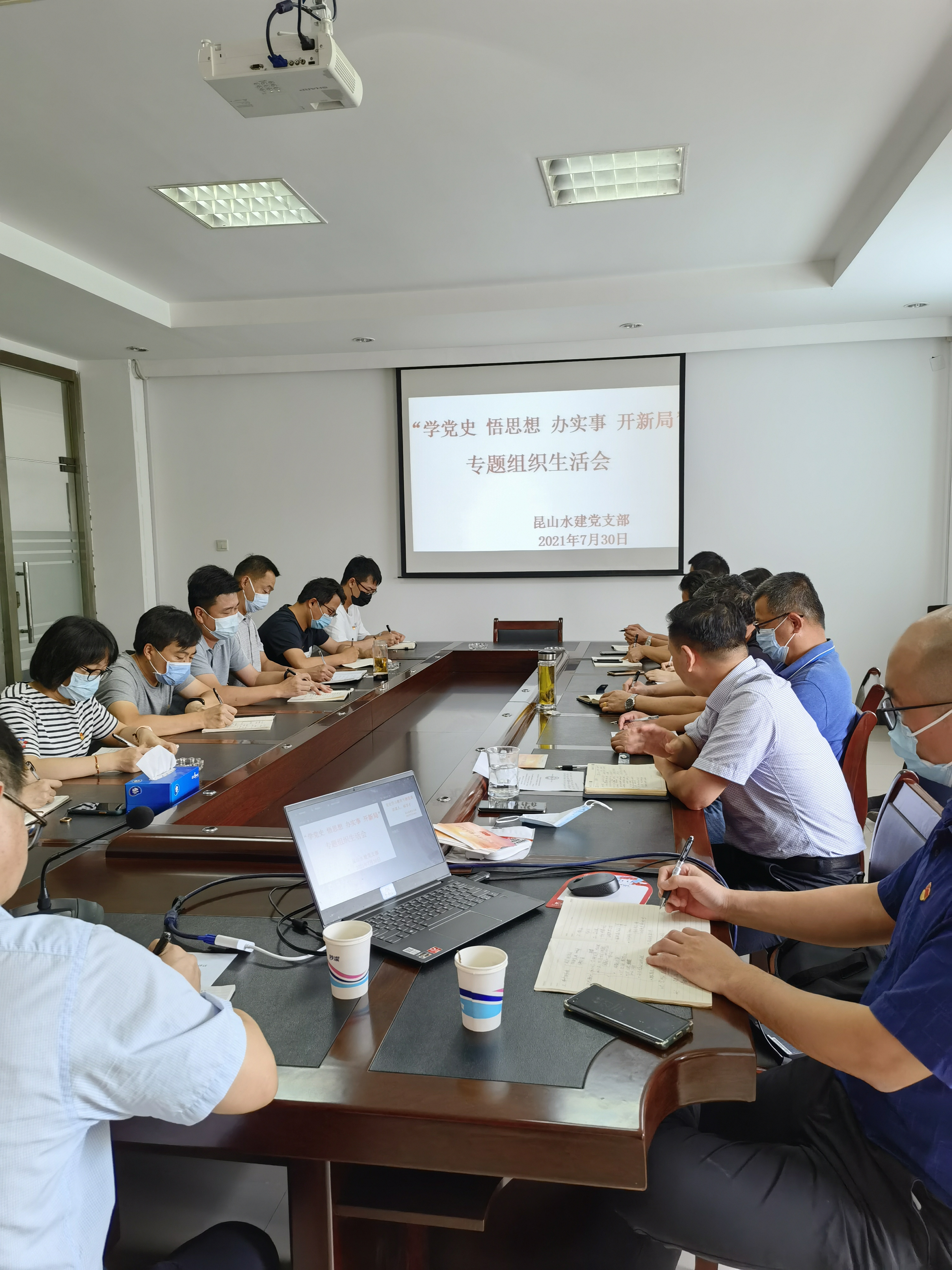 2021年7月30日下午1.30,召开支部大会进行“学党史 悟思想 办实事 开新局”为主题的专题组织生活会:首先组织全体党员学习昆山市委党史学习教育领导小组(昆学办发〔2021〕22号)《爱体育中国体育官方网站开展专题党课和召开专题组织生活会的通知》的精神。