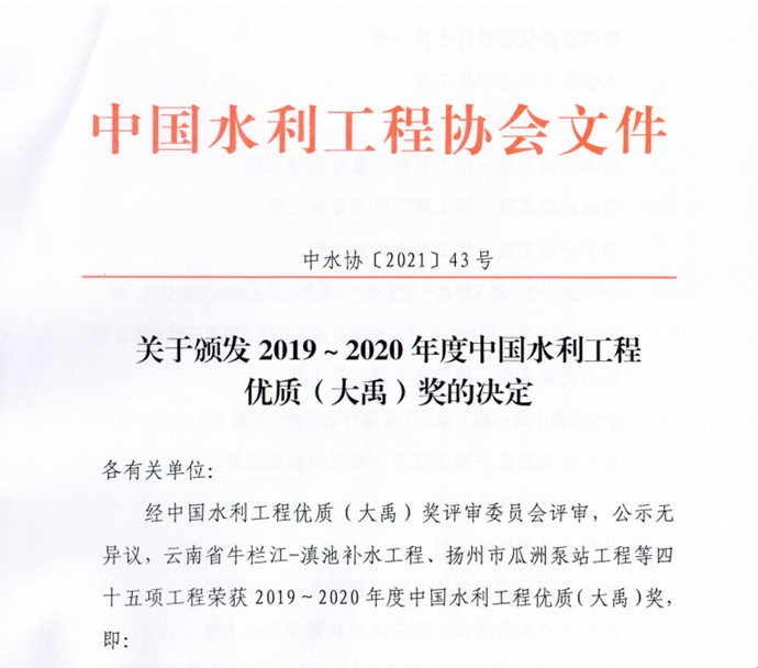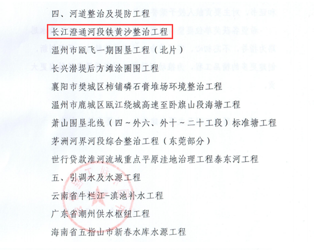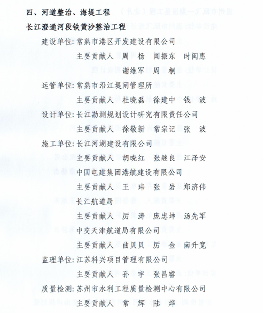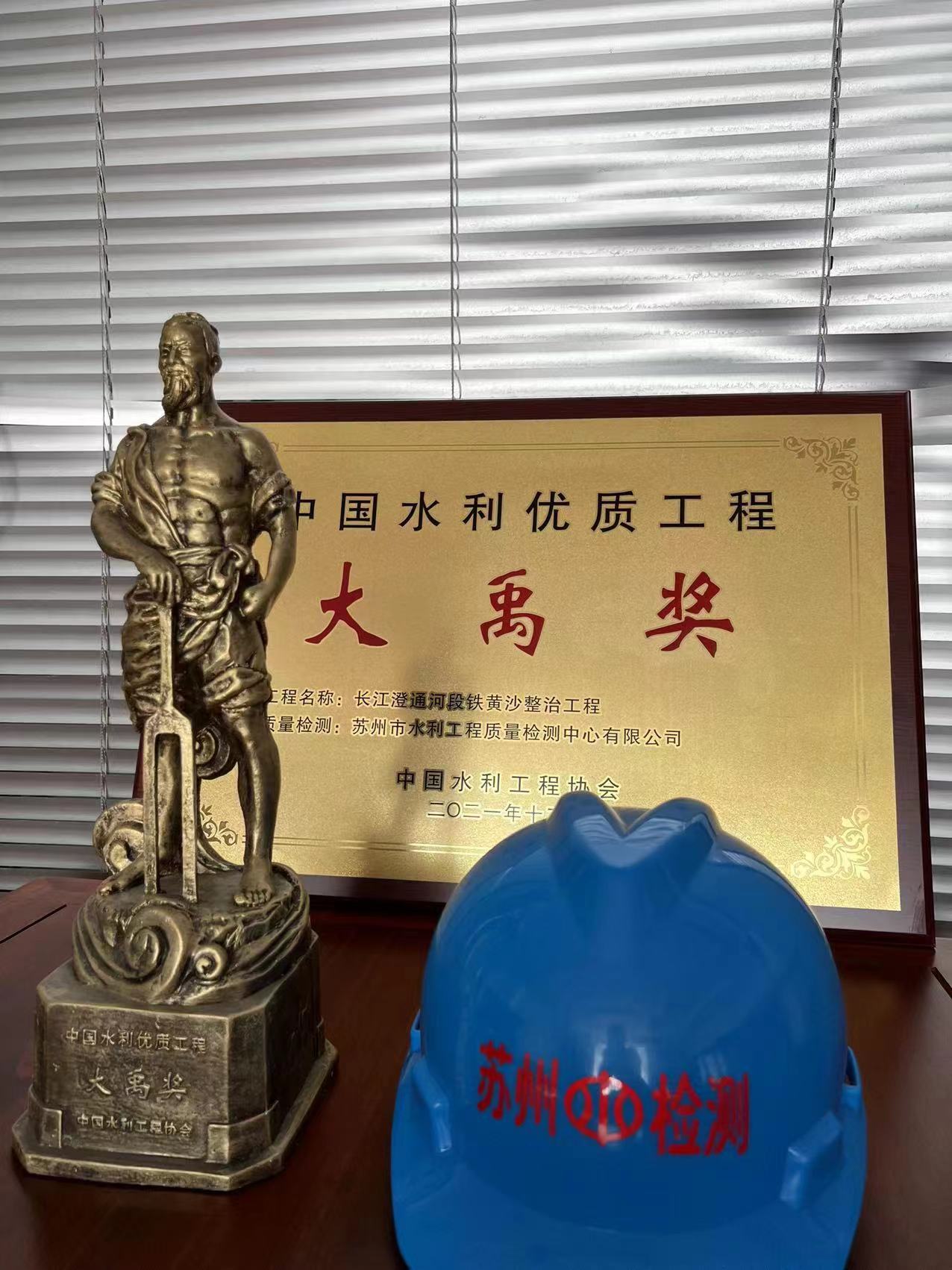 苏州市水利工程质量检测中心有限公司(简称“检测中心”)参建的长江澄通河段铁黄沙整治工程荣获2019-2020年度中国水利工程优质(大禹)奖。大禹奖是水利工程的最高奖项,该奖项是在水利部指导下,由中国水利工程协会组织开展评比达标表彰。所有获奖工程均是建设规范、设计优秀、施工先进、质量优良、运行可靠、效益显著的工程,且达到国内领先水平。