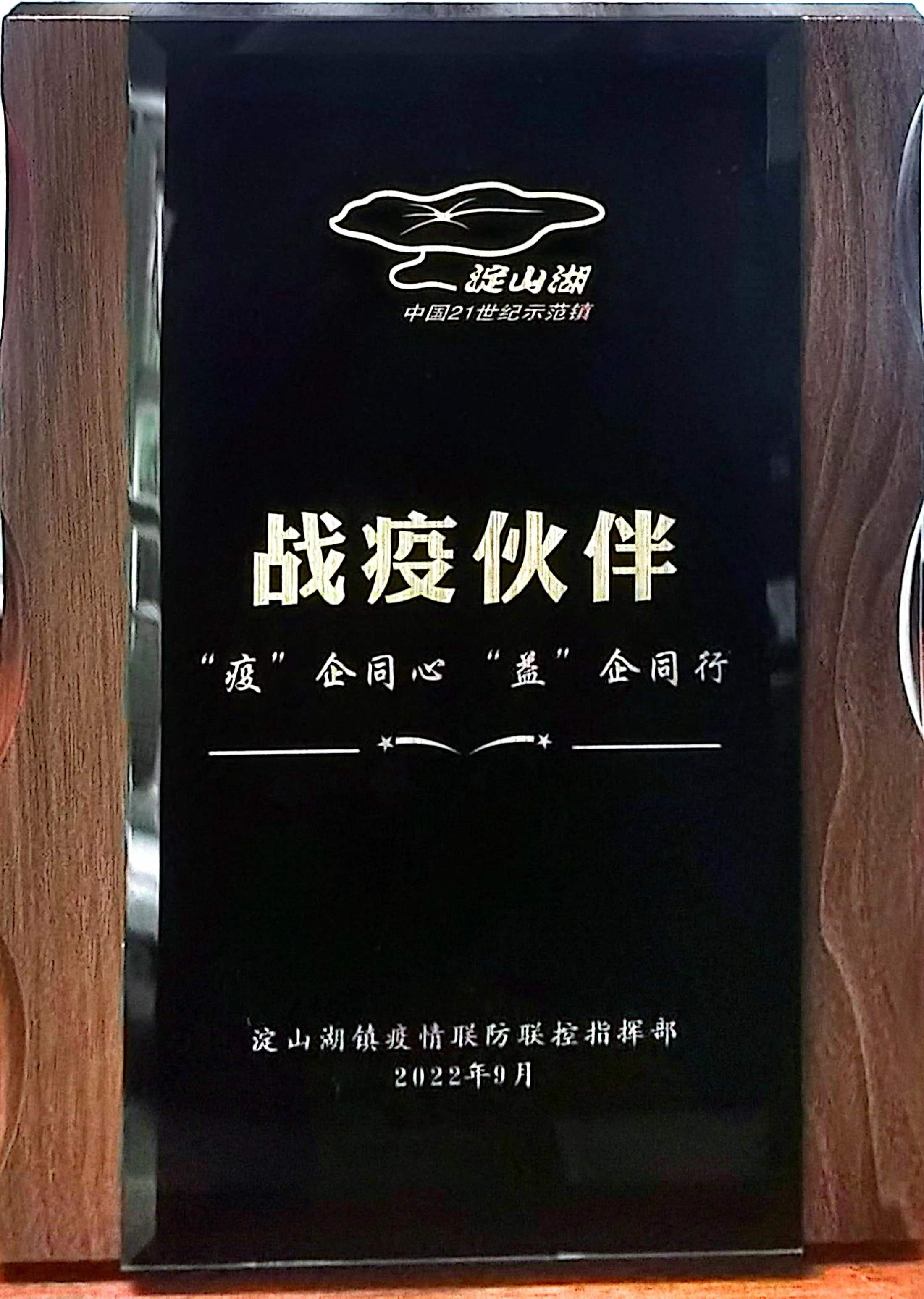 近日我司被淀山湖镇疫情联防联控指挥部授予“战疫伙伴”称号,以表彰我公司在抗疫中的杰出贡献,今后我公司将一如既往持续为社会公益事业做出贡献。