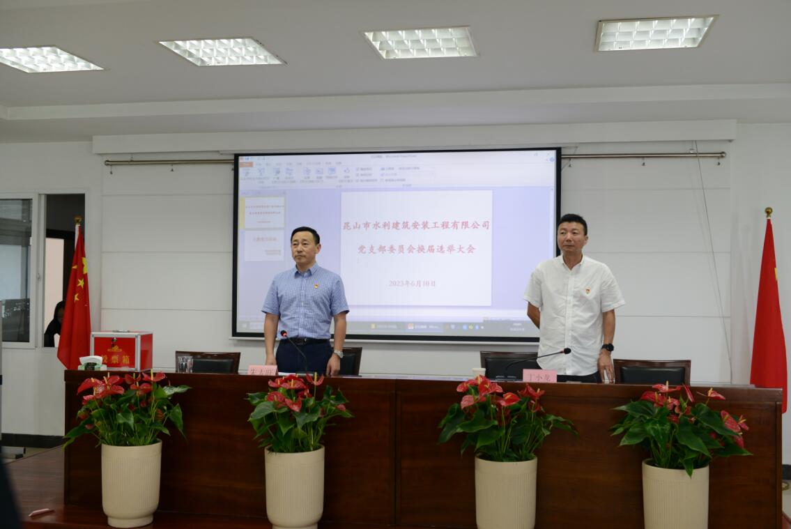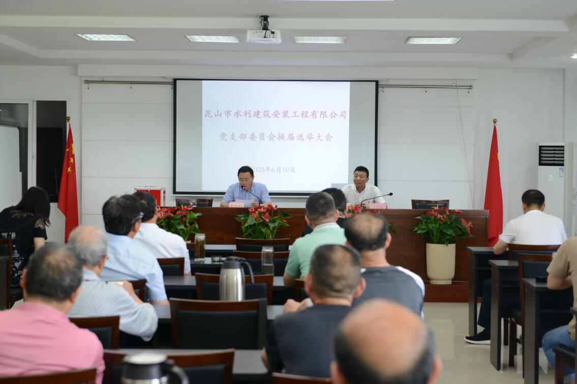 2023年6月10日公司召开第七届党支部委员会换届选举,会上各党员听取并讨论上届支部委员会的工作报告,选举产生新一届支部委员并明确了各人员的分工,水务局党委委员、副局长丁小龙同志做了总结发言。