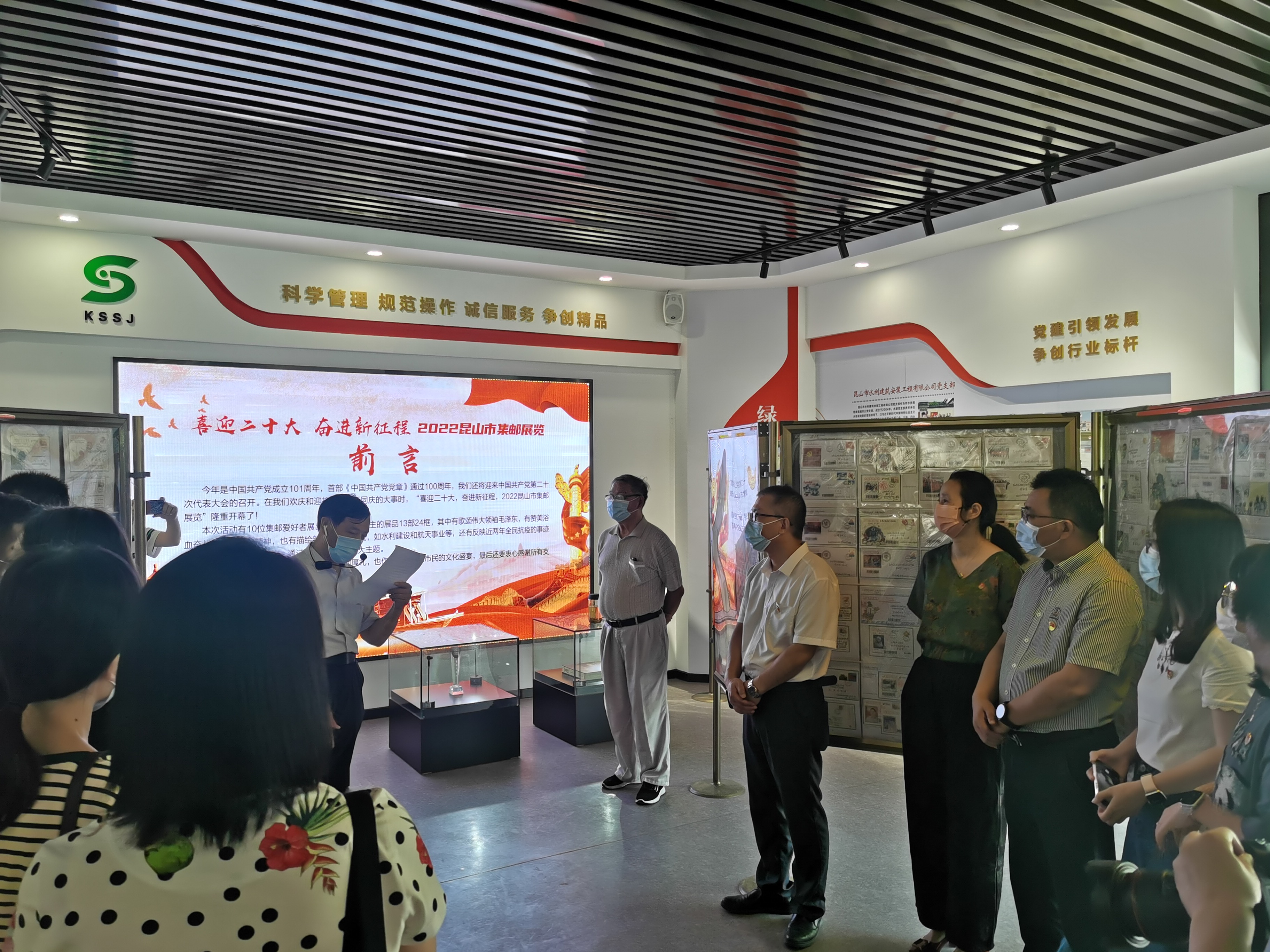在建党101周年之际,支部联合中国邮政昆山市分公司举办“喜迎二十大 奋进新征程”——2022昆山市“邮票上的党史”集邮展览活动。本次展出的作品,以珍贵的邮票见证新中国发展的全过程,以历史视角铭记中国共产党百年波澜壮阔的历程,通过邮展活动,弘扬伟大的建党精神,激励奋斗、砥砺前行,向二十大献礼。