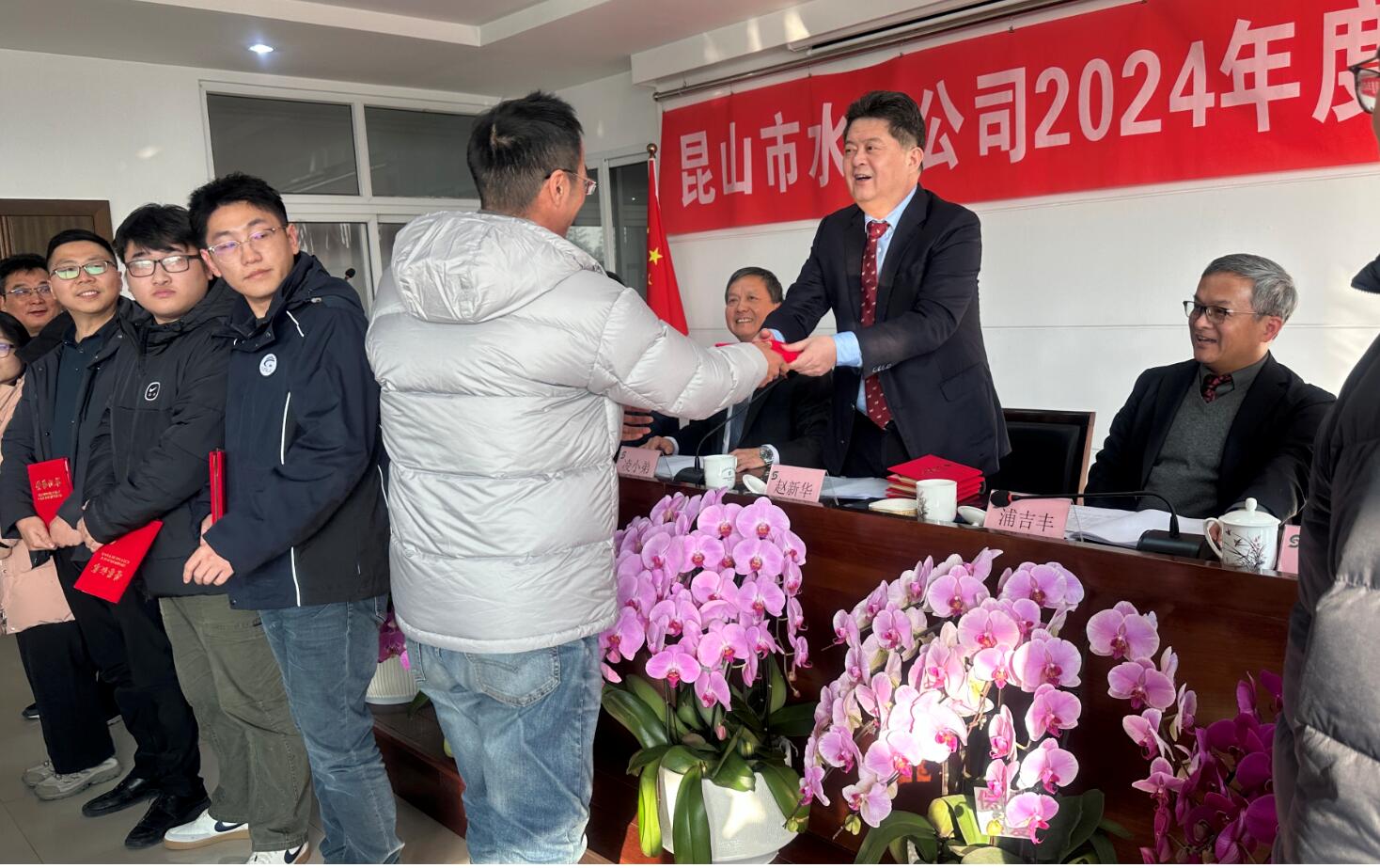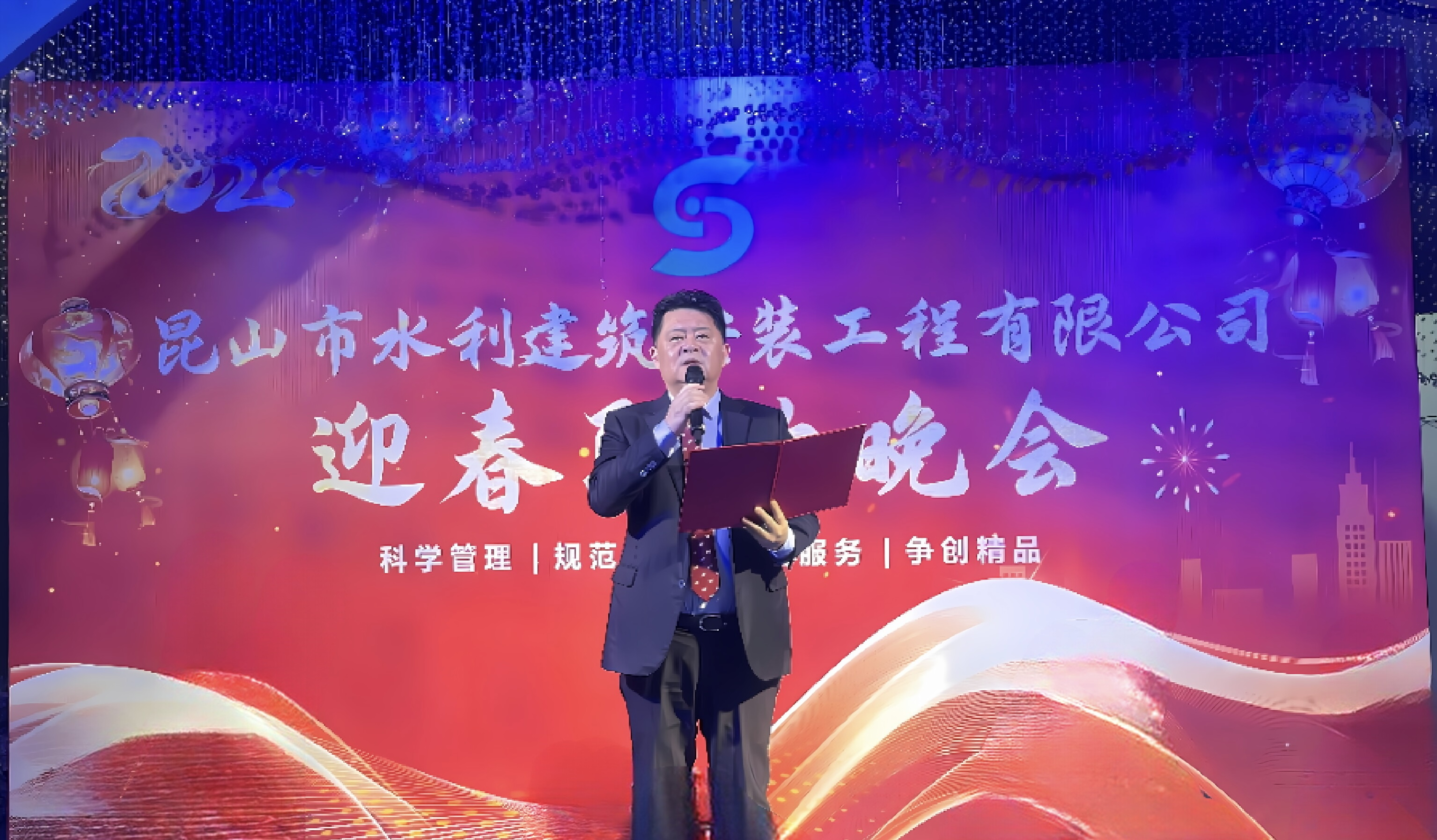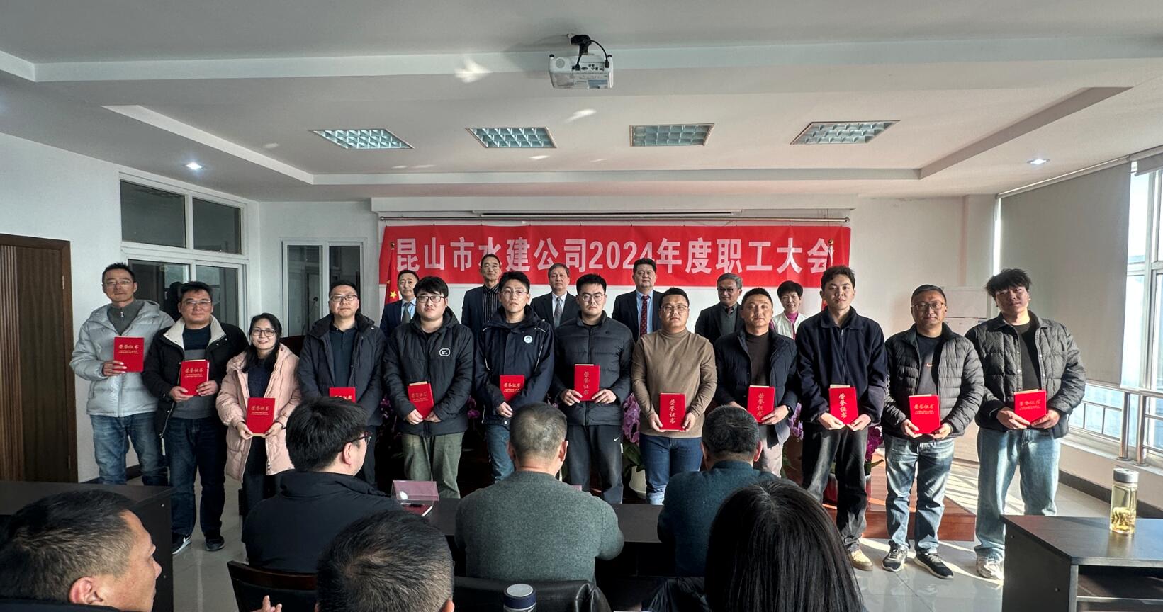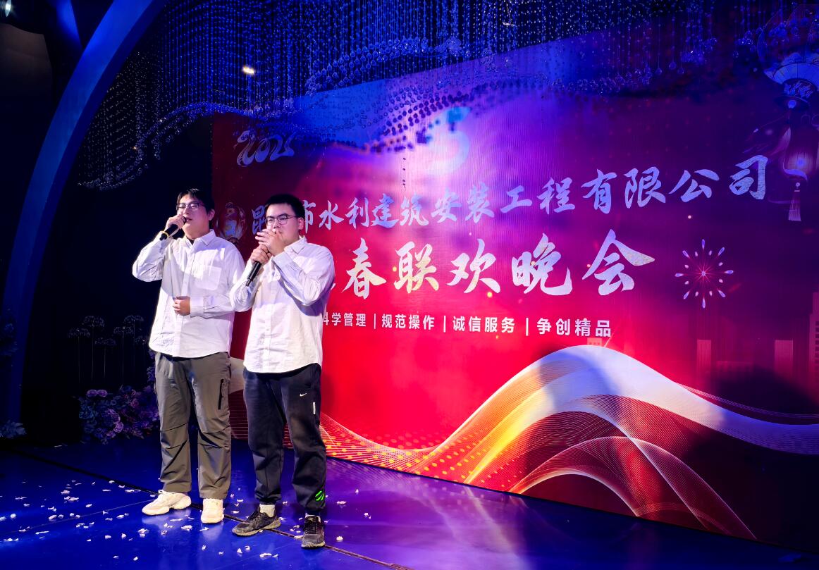 2025年01月17日,我公司顺利召开了2024年度职工大会,董事长赵新华先生对各部门先进集体、优秀个人进行了表彰,肯定了各位员工辛勤的努力。会后公司举办了新春晚宴,各部门表演了众多节目。会场欢歌笑语气氛热烈,所有员工将继续秉持奋进精神,与水建公司同心同德、携手奋进,一起迎向辉煌的明天。