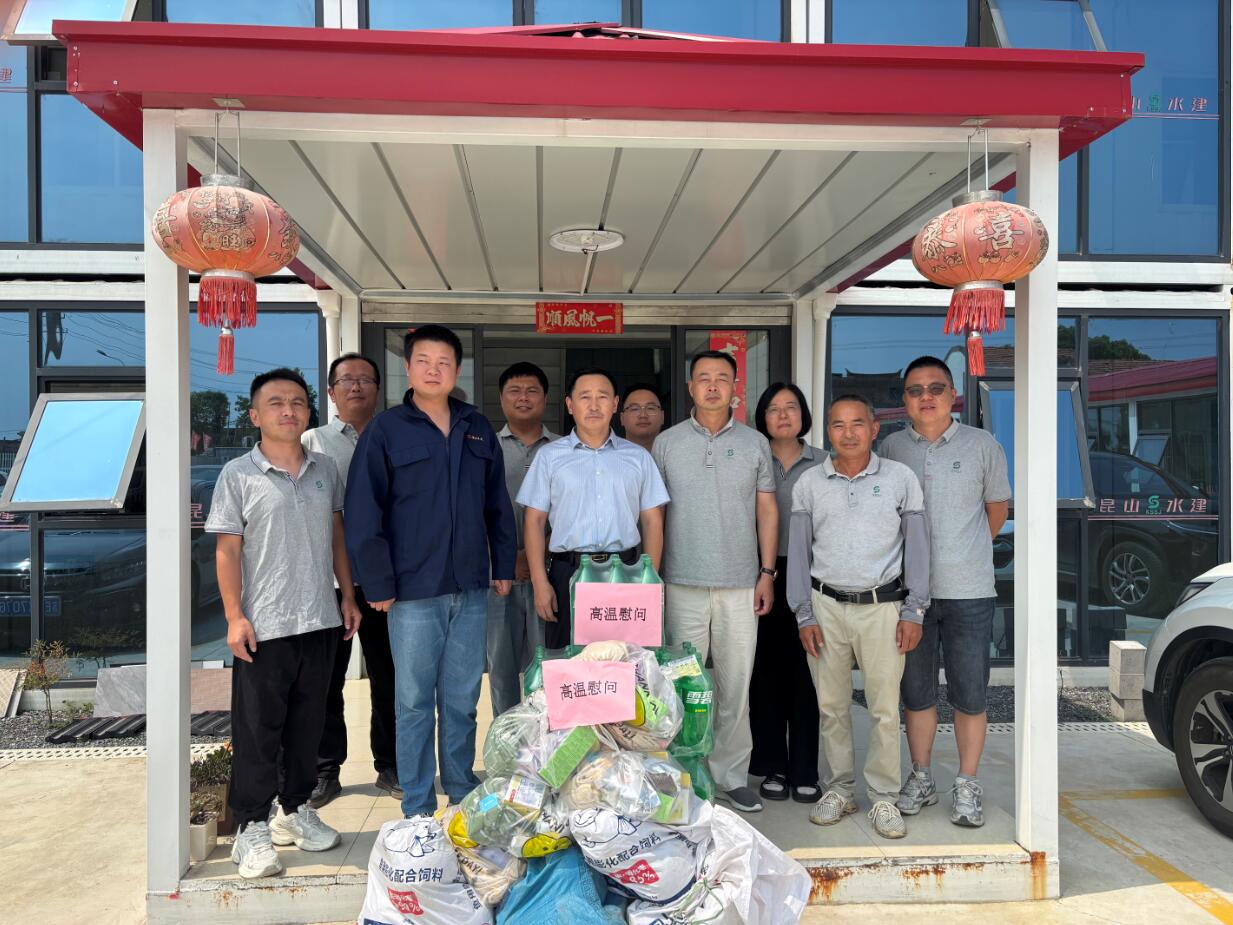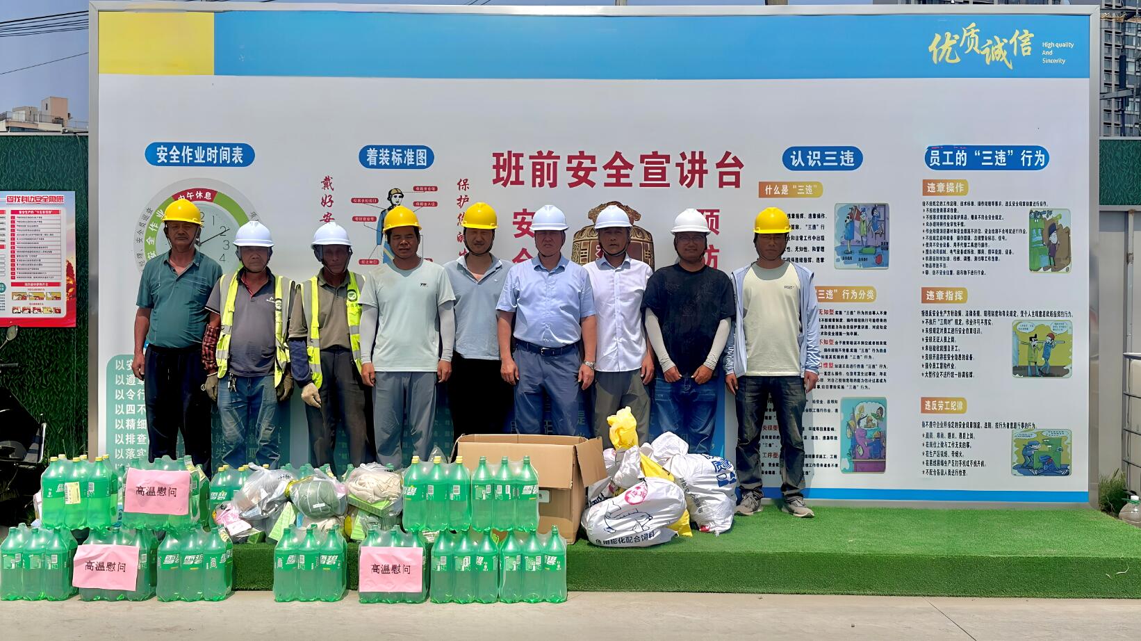 入伏以来持续高温,7月15日,公司领导深入工程现场,为坚守一线的管理人员及建筑工人送上清凉饮料、防暑药品等慰问物资。慰问组详细询问工人们作息安排与防暑措施,叮嘱项目部务必落实错峰施工、安全第一,确保建设者健康安全与工程有序推进。此次慰问传递了组织关怀,极大鼓舞了工人们战高温、保进度的士气。大家表示将以更饱满状态投入建设,严守安全红线,优质高效完成施工任务。